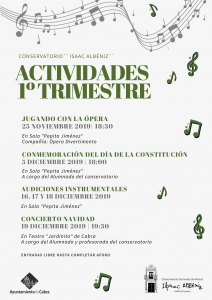 0 comments Eventos en octubre 21, 2019 Navegación de búsqueda y vistas de Eventos Mostrar la búsqueda de Eventos Búsqueda de Eventos Día de Buscar Navegación de vistas de Evento Ver como ListaMesDía « Día anterior Siguiente día » 5:30 pm PRESENTACIÓN DEL CARTEL DE ACTIVIDADES 1º TRIMESTRE octubre 21, 2019 @ 5:30 pm - 6:00 pm Conservatorio Elemental de Música “Isaac Albéniz”, Avenida José Solís, 15 Cabra, Córdoba 14940 España Más información » + Exportar eventos Share: Entradas relaccionadas Política de Cookies Aviso Legal
