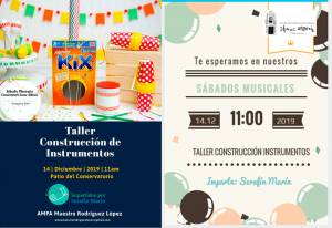 El próximo Sábado 14 de diciembre a las 11:00 horas en el Patio del Conservatorio se realizara la actividad "Taller construcción de instrumentos". Será impartida por el profesor Serafín Marín.