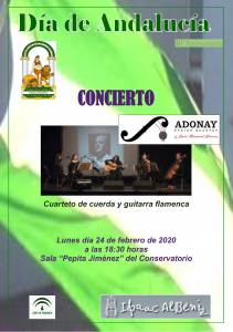 #ConservatorioCabra CUARTETO DE CUERDA Y GUITARRA FLAMENCA "ADONAY" 🎸🎼🎼 El próximo Lunes 24 de Febrero de 2020 a las 18:30 tendremos el espectáculo de la obra "Estrellitas de mi cielo Flamenco". 💃🕺 Estrellitas de mi cielo flamenco, es una obra formada por cinco piezas, dedicadas a un maestro del flamenco. Se […]