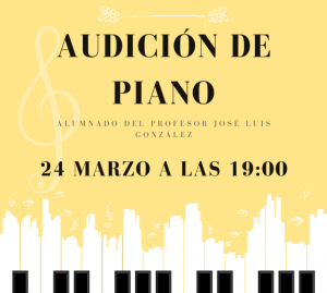 AUDICIÓN DEL ALUMNADO DE PIANO El próximo Martes 24 de Marzo de 2020 a las 19:00 tendremos la audición de los alumnos de piano del profesor José Luis González.