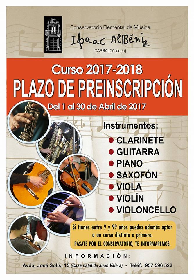 Especialidades: Violín, viola, violoncello, clarinete, saxofón, guitarra y piano.